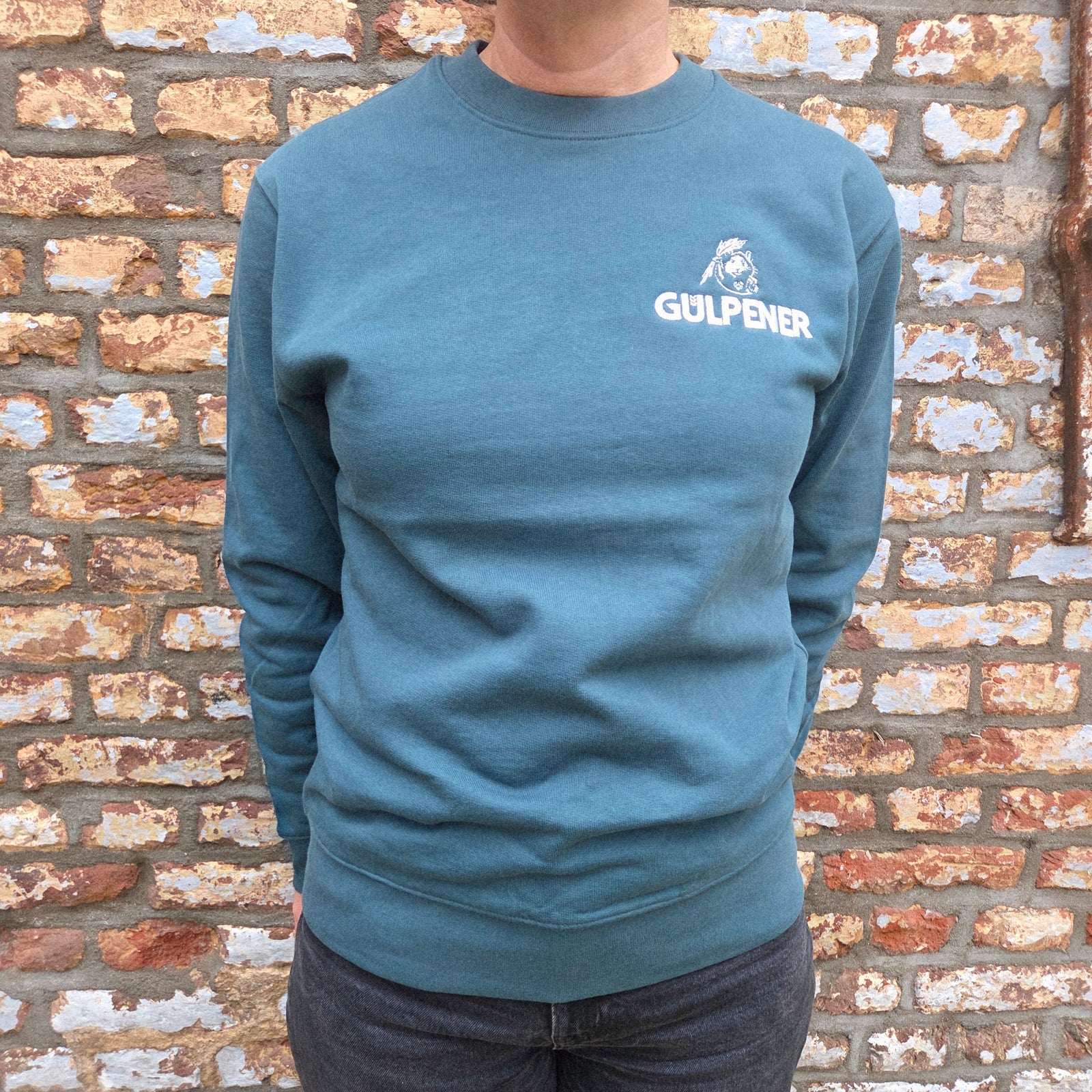Vanaf €49,50 EURSportieve Gulpener trui in teal heeft een comfortabele uniseks fit, een opvallend wit geborduurd logo en is gemaakt van 100% biologisch katoen met oog voor mens en milieu. Lees meer