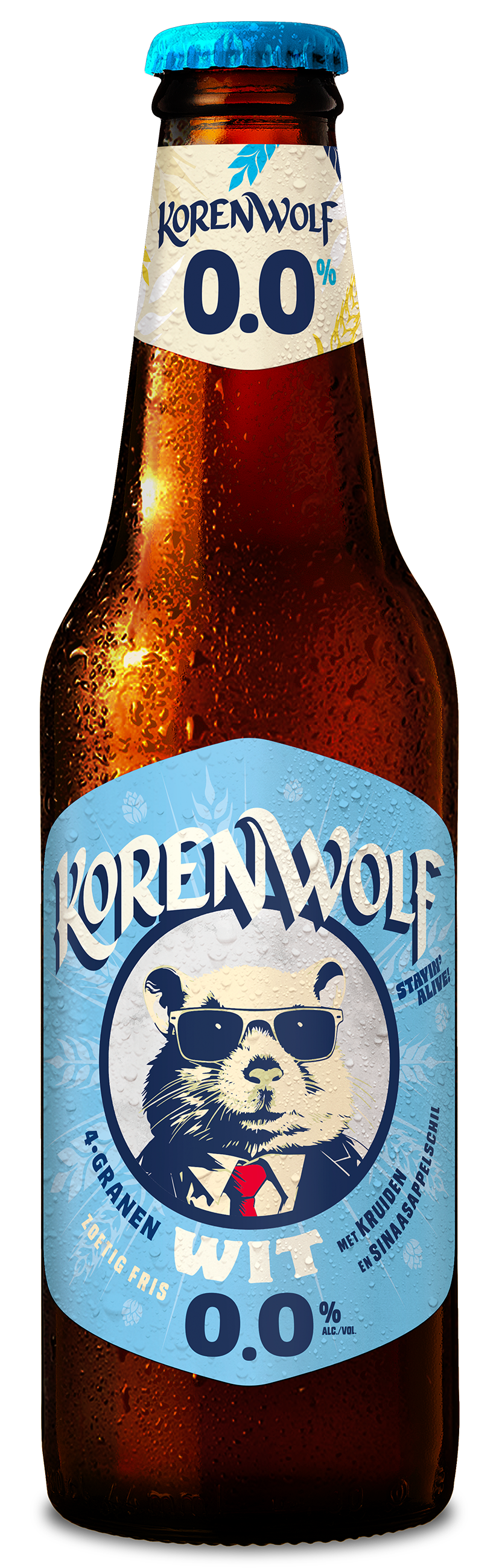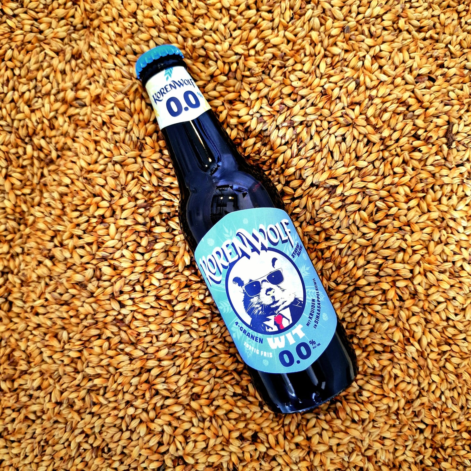 Korenwolf Wit 0.0% is is een licht en kruidig bier. Gebrouwen met lokale tarwe, spelt, rogge en gerst, en een kruidenmengsel met sinaasappel, koriander en vlierbloesem.