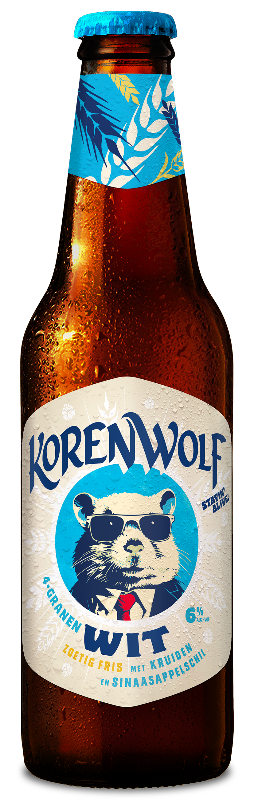 Korenwolf Wit is is een licht en kruidig bier. Gebrouwen met lokale tarwe, spelt, rogge en gerst, en een kruidenmengsel met sinaasappel, koriander en vlierbloesem.